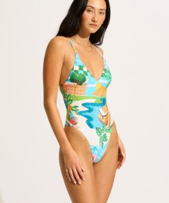 Seafolly Ladies Women’s Swimwear Chiara Diamond Wire Bandeau One Piece – Ecru
